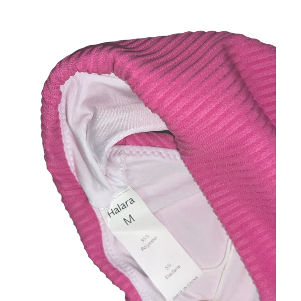 Halara Ribbed High Waisted Cheeky Bikini Bottoms Sz Medium Womens Hot Pink