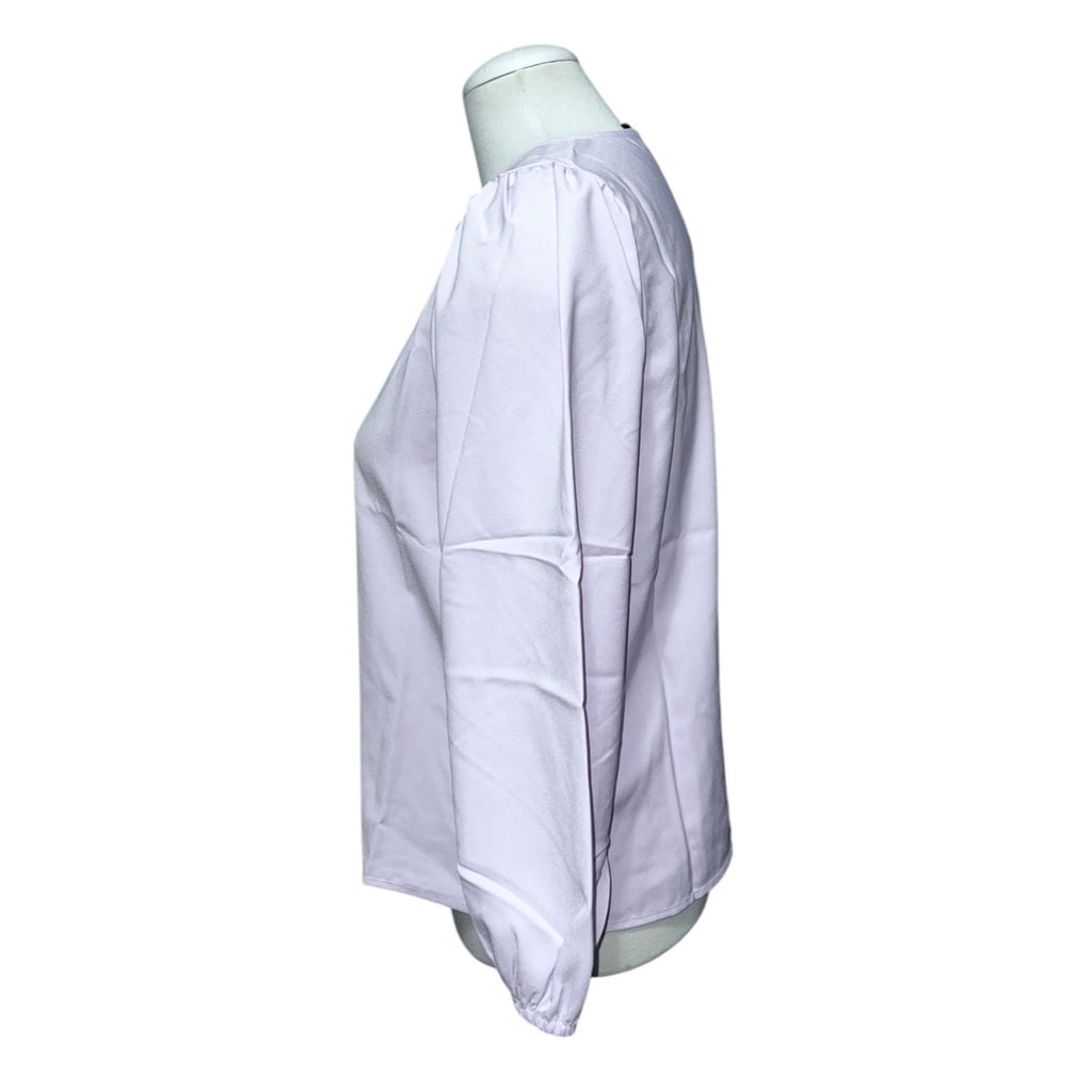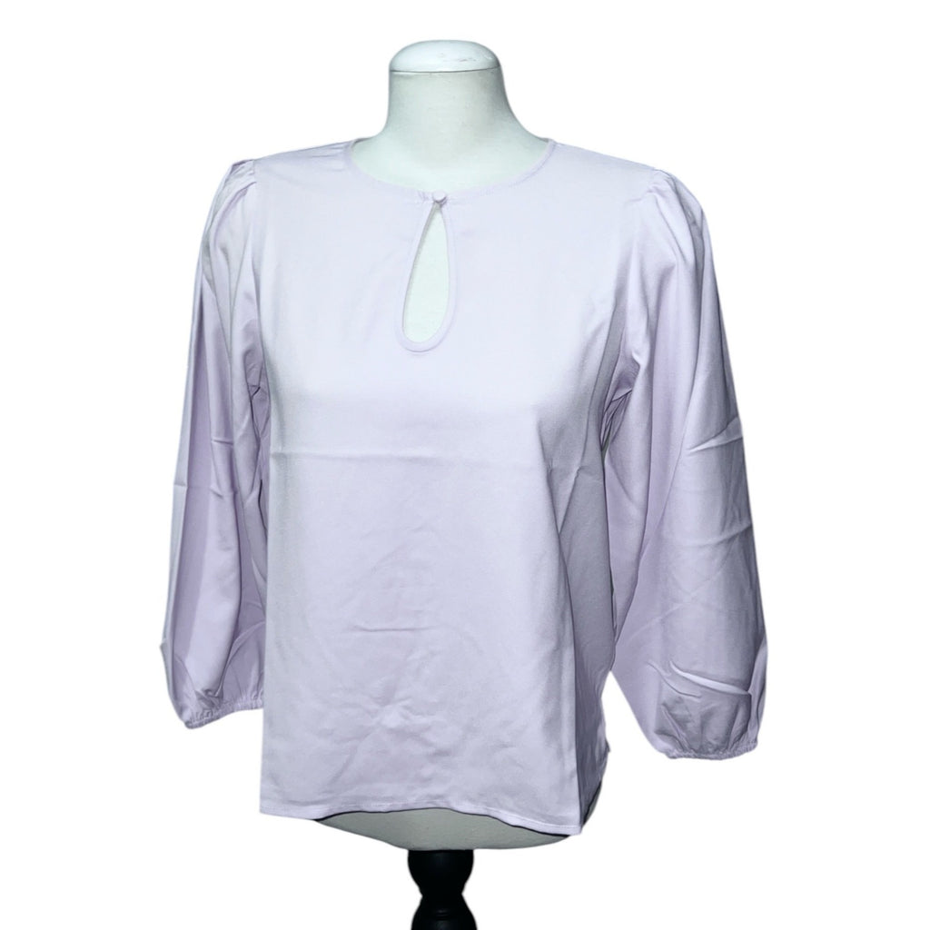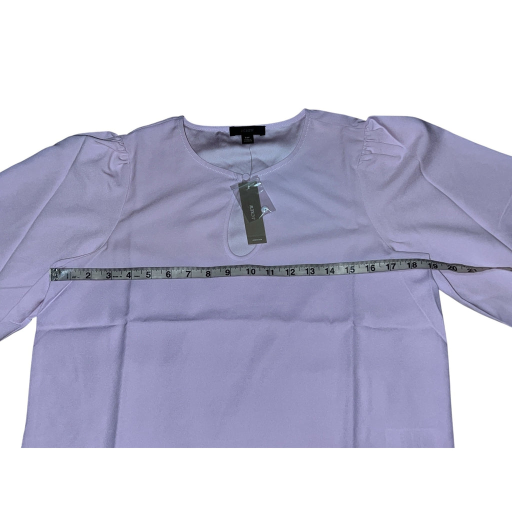Elevate your wardrobe with this elegant J. Crew brand new ligtht purple blouse, featuring a stylish keyhole neckline and long, flowing sleeves. Crafted from 100% polyester, it offers both comfort and durability. Ideal for adding a touch of sophistication to any outfit, day or night.