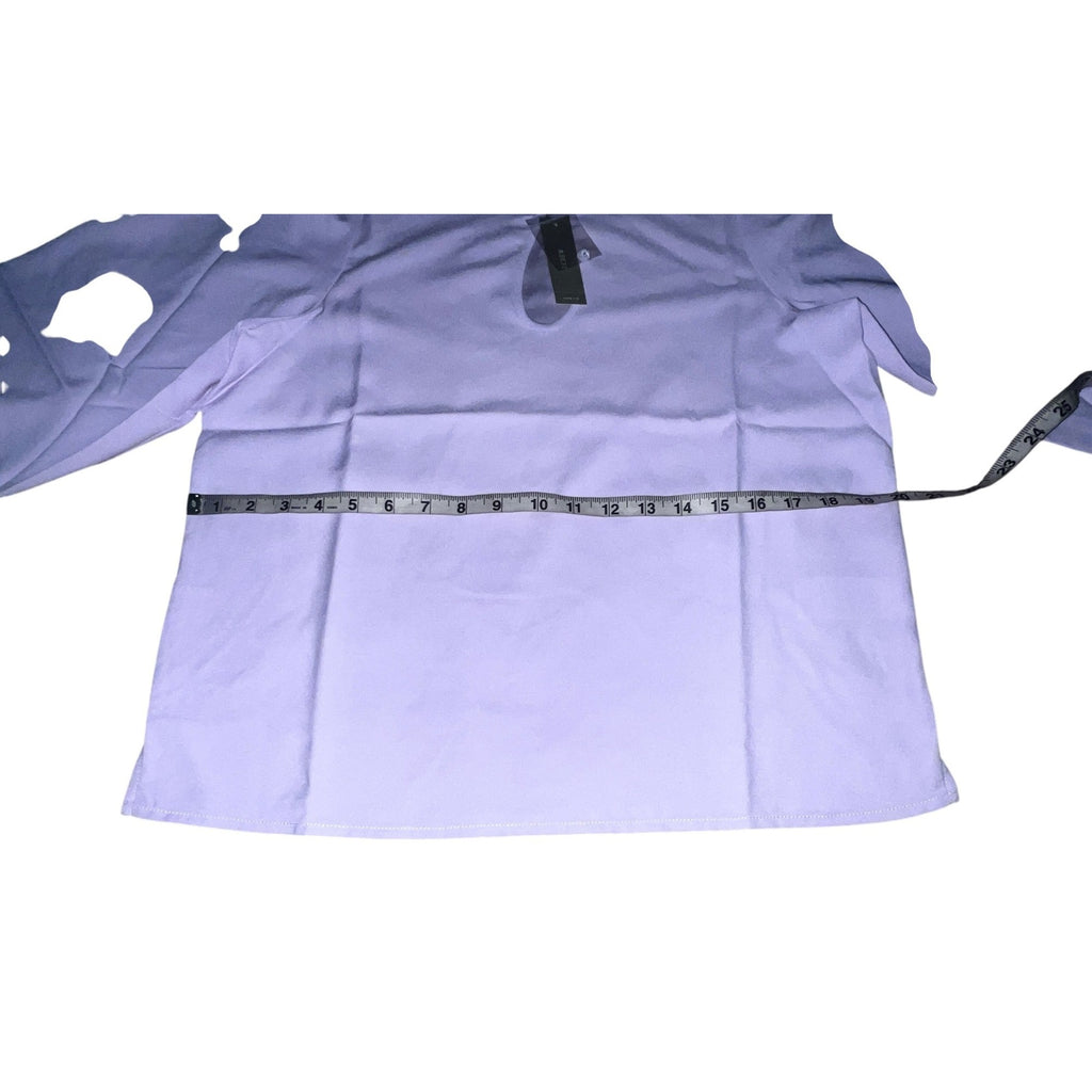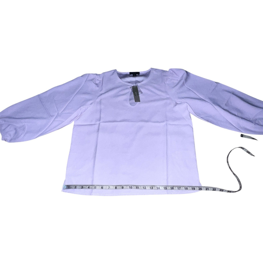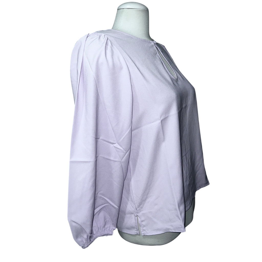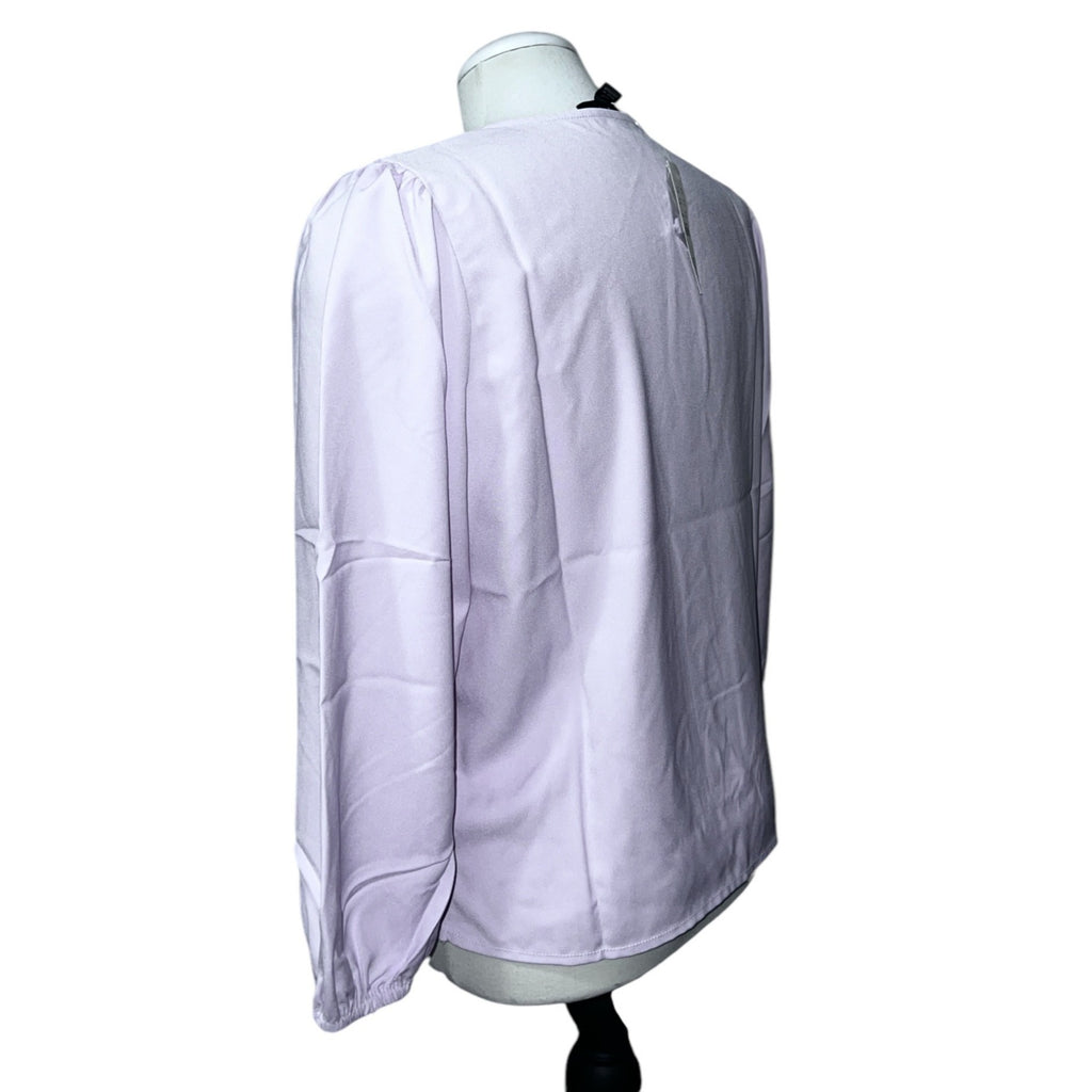 Elevate your wardrobe with this elegant J. Crew brand new ligtht purple blouse, featuring a stylish keyhole neckline and long, flowing sleeves. Crafted from 100% polyester, it offers both comfort and durability. Ideal for adding a touch of sophistication to any outfit, day or night.