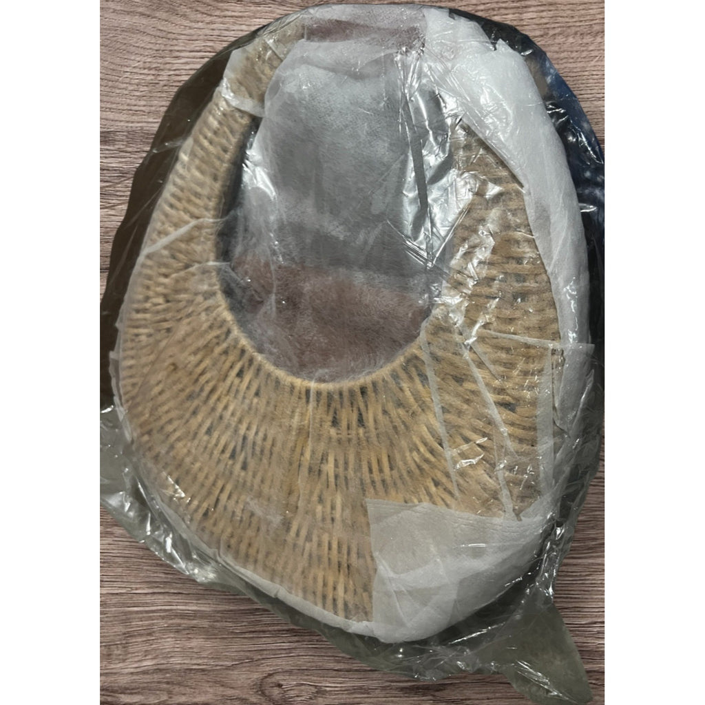 100% raffia with vegan leather lining